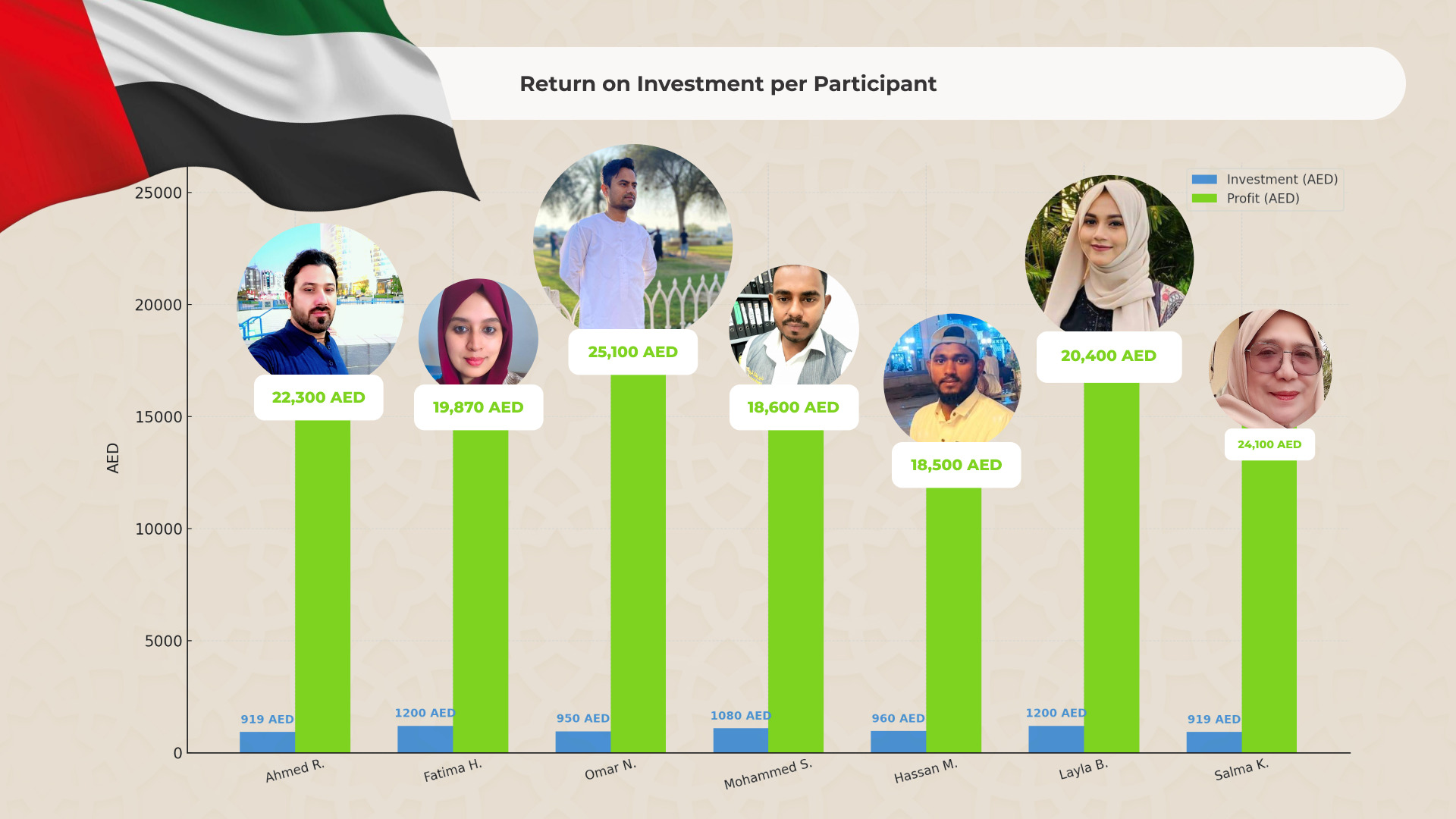 He explained that while the platform operates fully automatically and exact profits can’t be guaranteed, historical results show that within 30 days, users have earned between AED 18,500 and AED 92,000.
